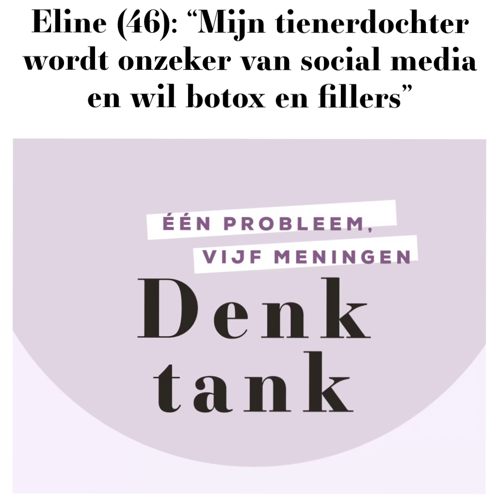 In de Libelle Denktank leggen lezeressen een dilemma voor. Deze week Eline, haar dochter wil botox en fillers gebruiken terwijl ze nog maar zeventien is. Andere lezers reageren en ook Sietske geeft antwoord.
